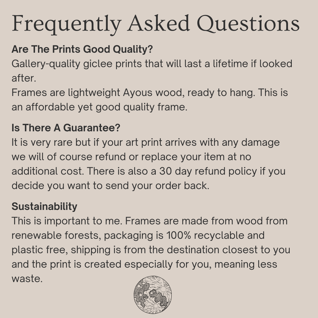 - Giclée-printed on archival paper - These prints could last a lifetime if well looked after.