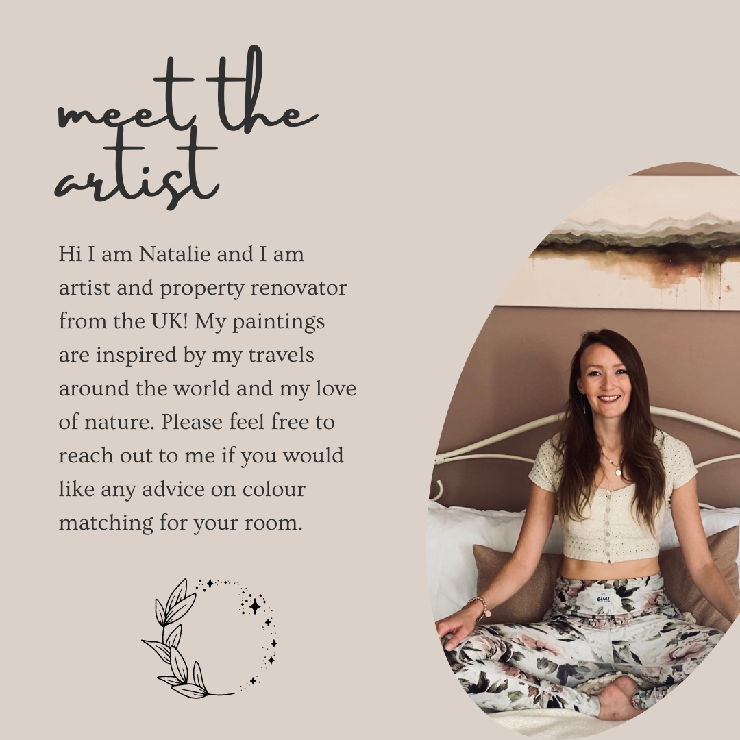 See what the artwork will look like in your room before purchasing! Simply send me a photo of the wall straight on (not at an angle) and I can send you a photo back of a mock up of the artwork on your wall. I can also offer second opinions on whether the artwork will work for your colour scheme as I have designed my own high end airbnbs myself and understand how to pull a room together!
