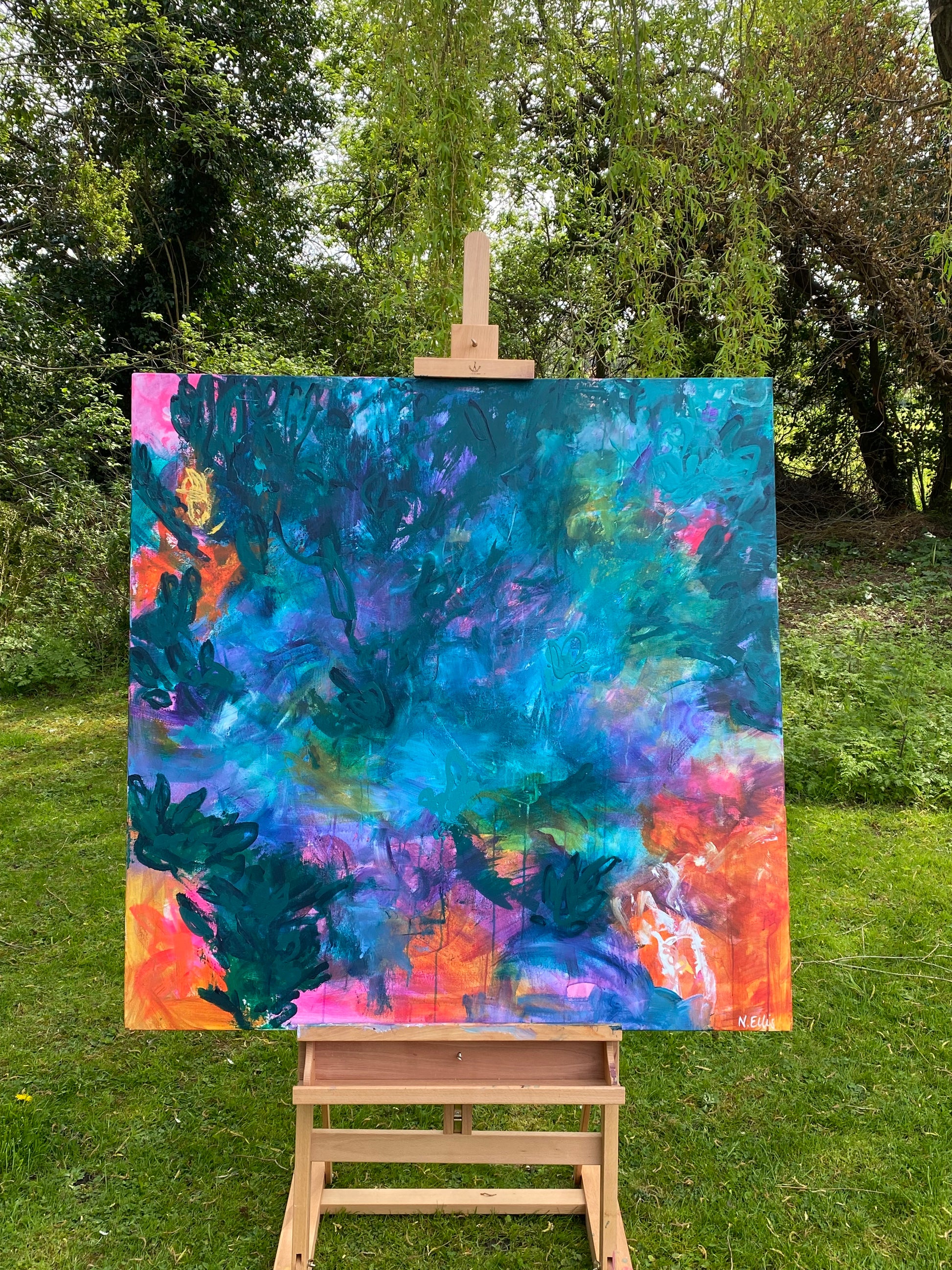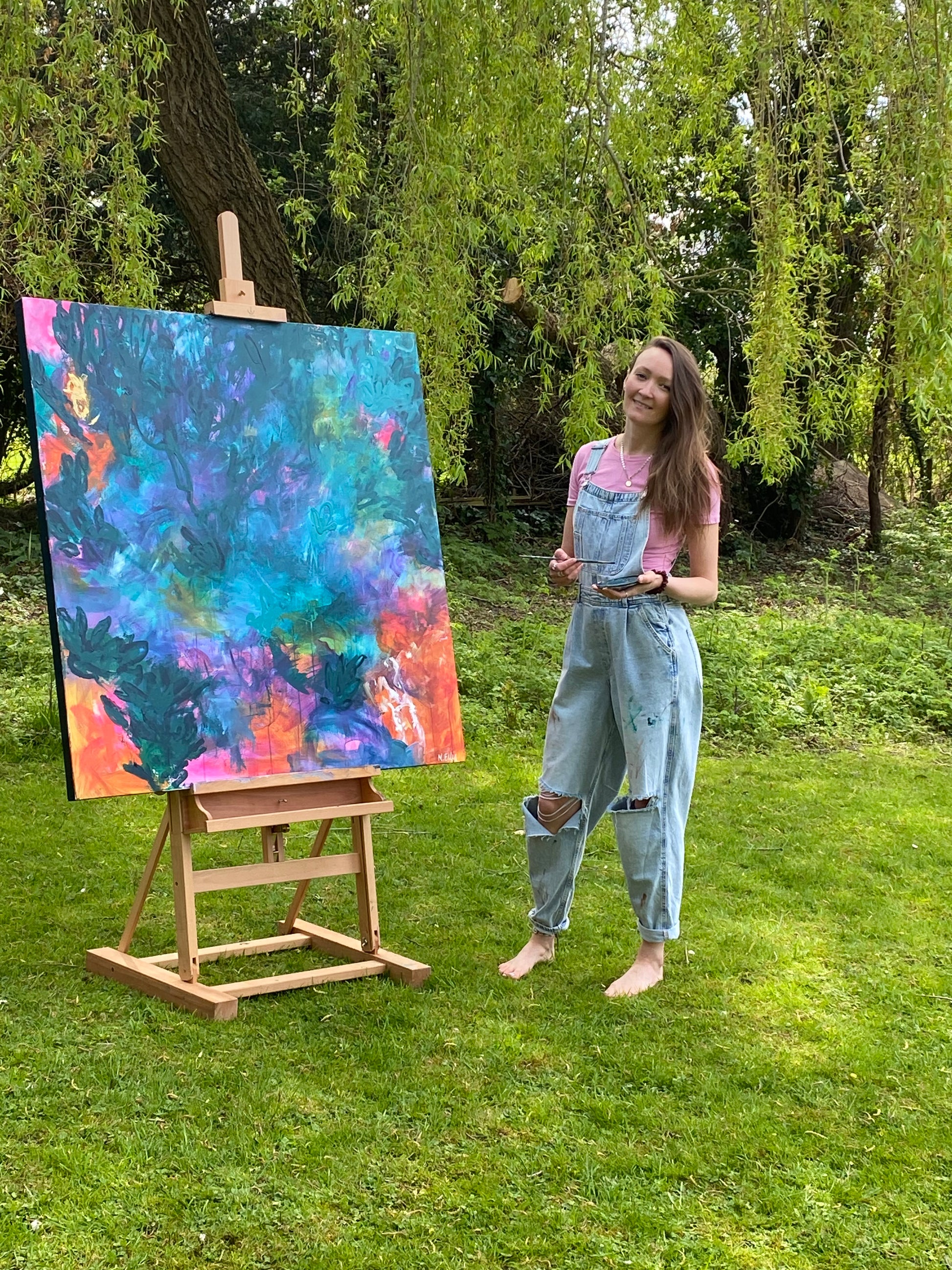Whilst I was painting "Bursting With Life" I was surrounded by nature and butterflies and birds tweeting and it felt like I was bursting with life!