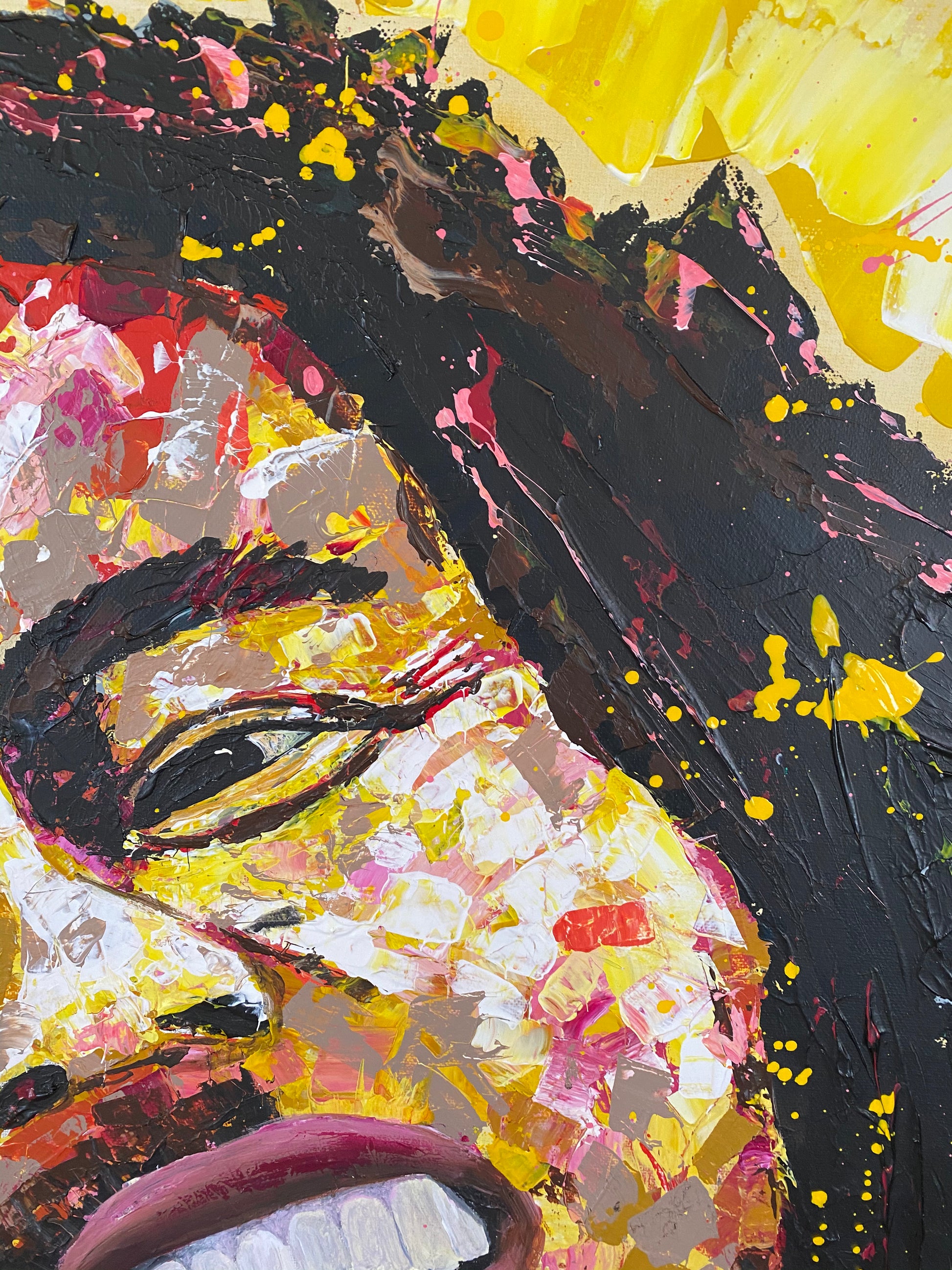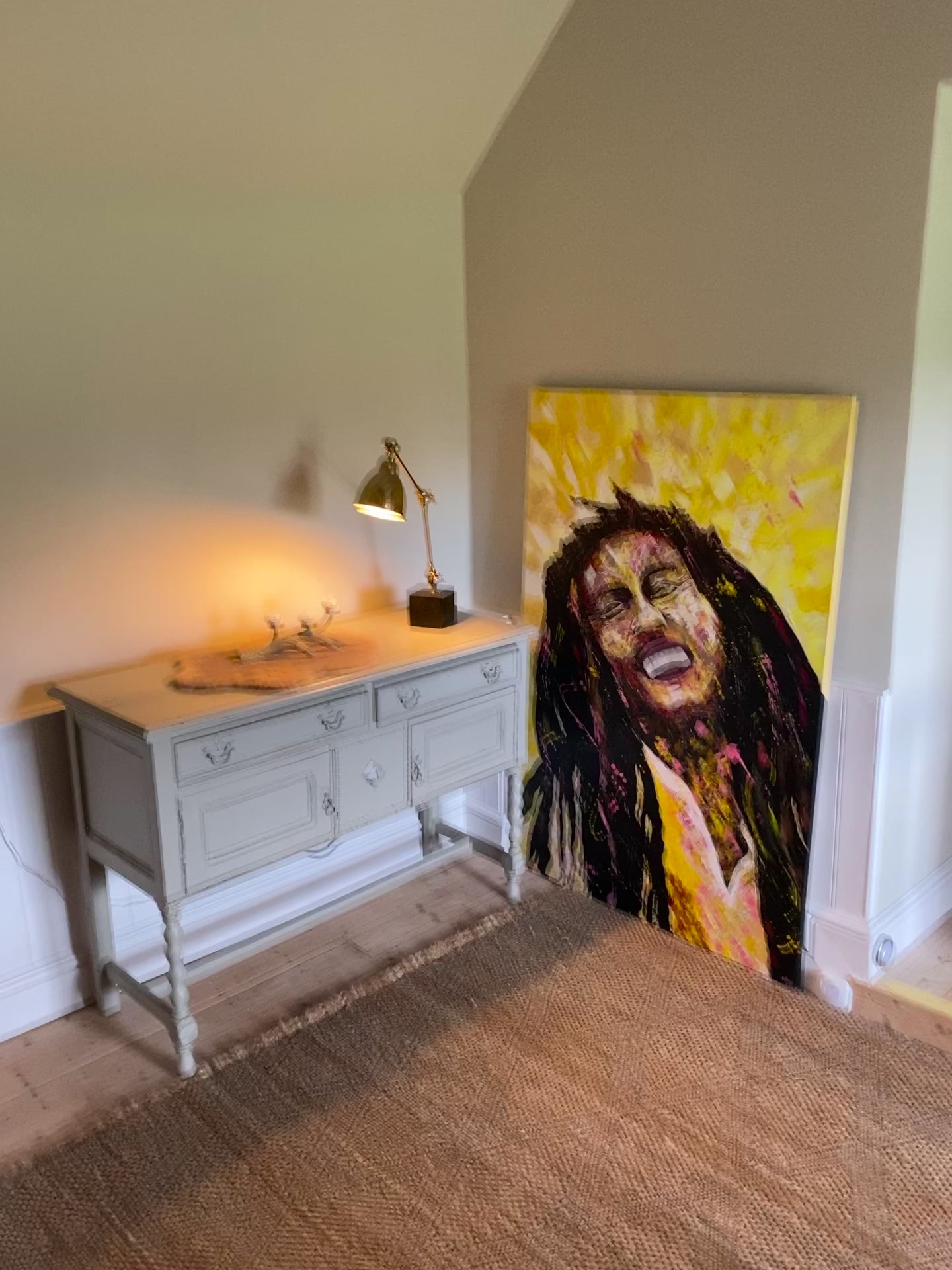 This is an original extra large modern painting of Bob Marley on 100cmx150cm Canvas and mounted on a wooden backing.